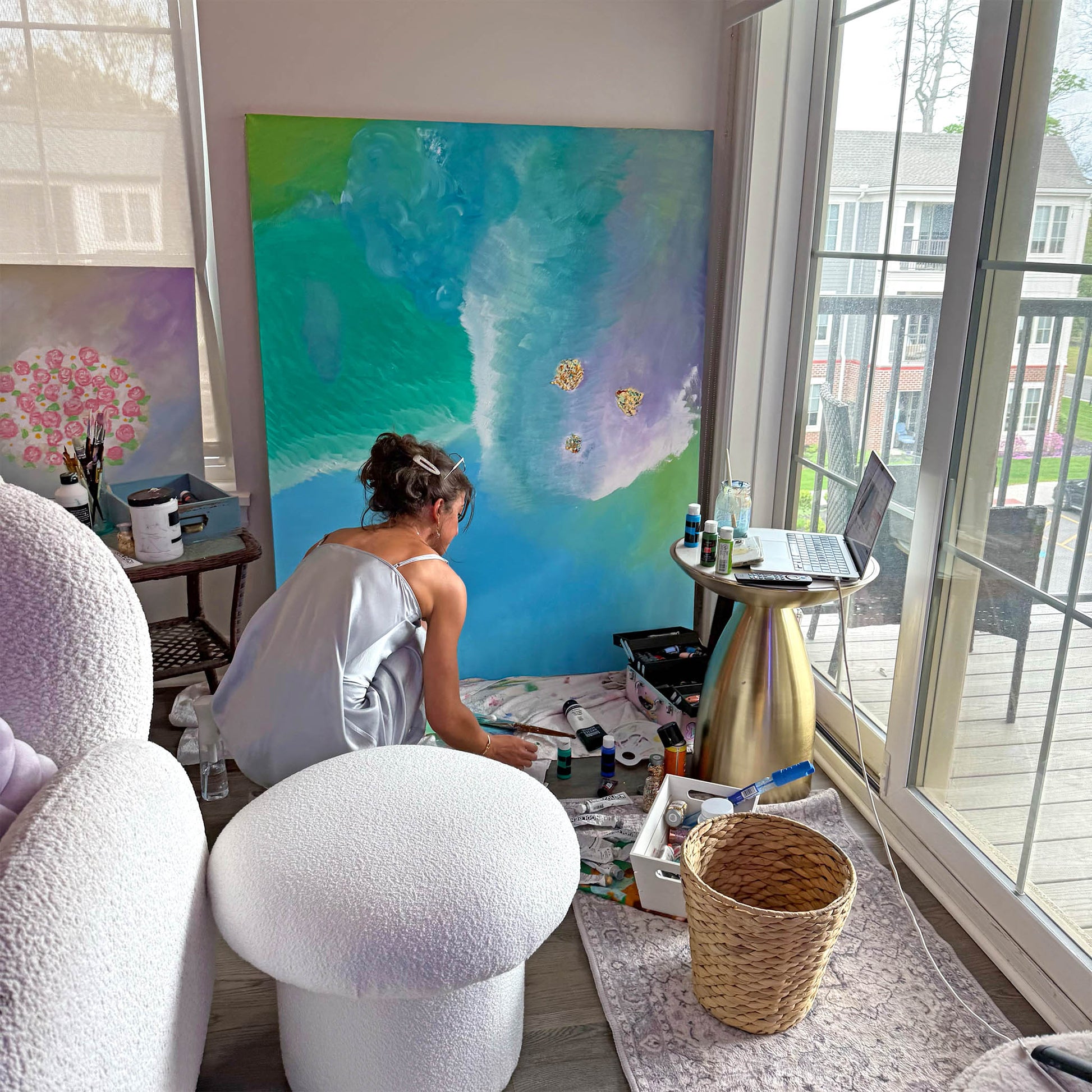 each piece is completely unique, and u can even set an intention for what u’re going for. want more peace? momentum? just vibes? G will paint with that energy in mind so the piece carries it forward ✨